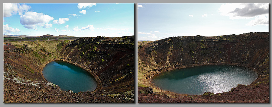 | Enttäuscht waren wir aber nicht, entschädigte doch die abwechslungsreiche Landschaft für die nicht erfüllten Erwartungen. Es gibt noch weitere, allerdings für den Normaltouristen nicht so leicht zugängliche Thermalgebiete in Islands, aber auch diese dürften kaum einen Vergleich zum nordamerikanischen Yellowstone wagen. Das "Butterfaß" hat uns dafür schon sehr gut gefallen. |